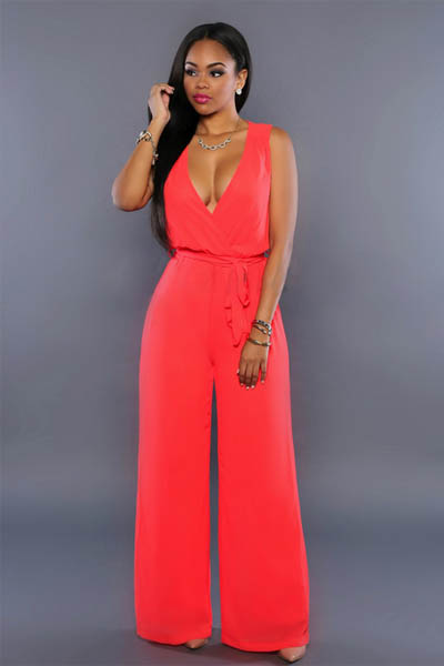 Red Wrapped Plunging Tie-Waist Romper L55195