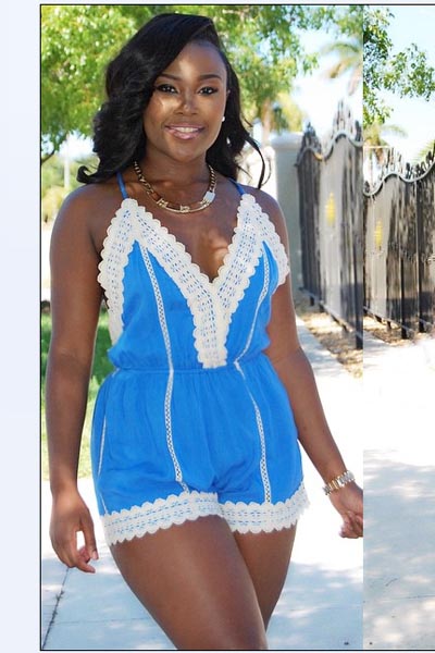 White Chiffon V-neck Lace Sexy Shorts Siamese L55155