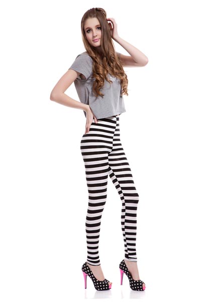 Comfortable Elasticity of black-and-white Striped Leggings L9685