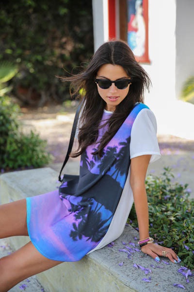 Casual Summer Tropical Landscape Palm Print Loose Short Sleeve Dress L407