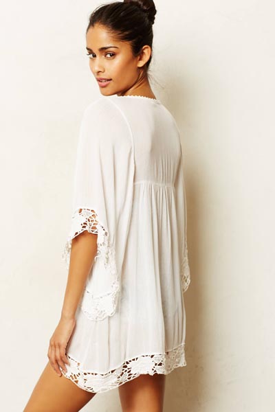 White Flower Kimono Lace Kaftan Beachwear L38248