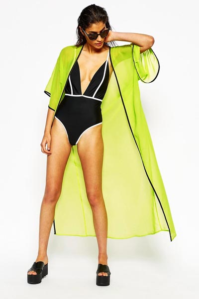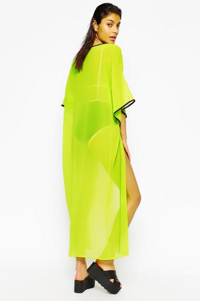 Fluorescent Green Contrast Trim Long Beach Kimono L38257-1