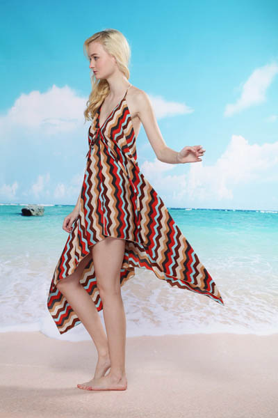 Halter Hilo Hem Beach Cover-up Coffee and Red L3748-2