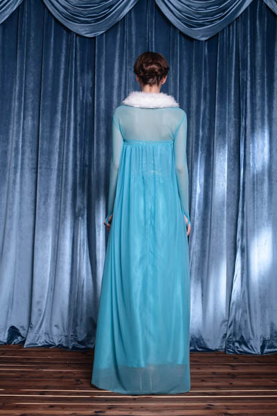 long sleeves, glitter printed front bodice and detachable plush collar.