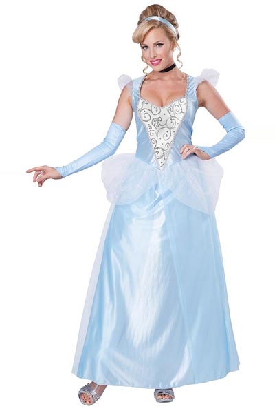 Waltz your evening away in this Romantic Midnight Princess costume that features a floor length gown with a chiffon overlay and peplum,