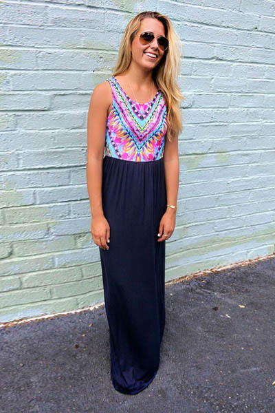 | Color Block Spliced Chevron Stripe Maxi Dress L51212-4 |