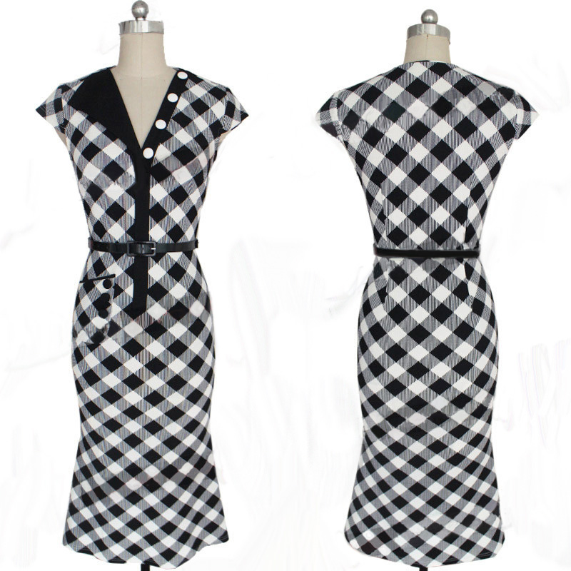 | Charming Mermaid With Pockets Patchwork Midi Dress L36049-1 |
