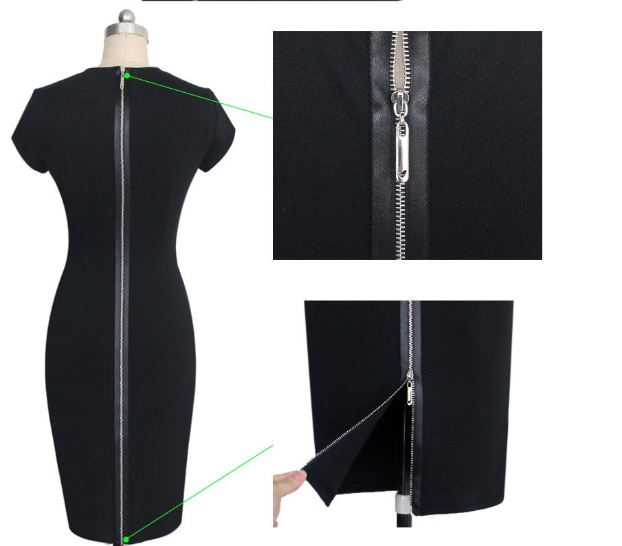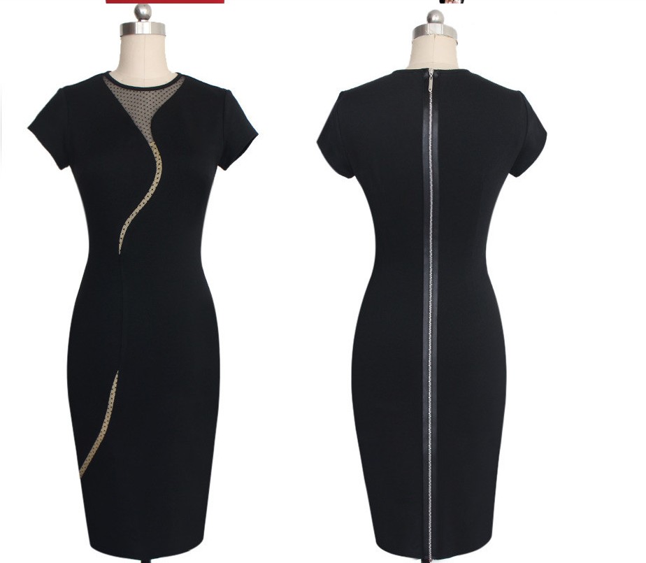 | Womens Elegant Sexy Irregular Mesh Back Zipper Stretch Midi Dress L36051-1 |