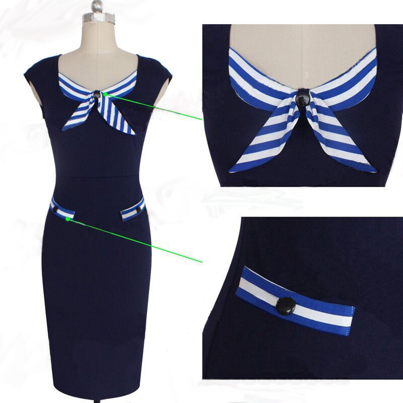 | Vintage Rockabilly Sailor Navy Blue Midi Dress L36054 |