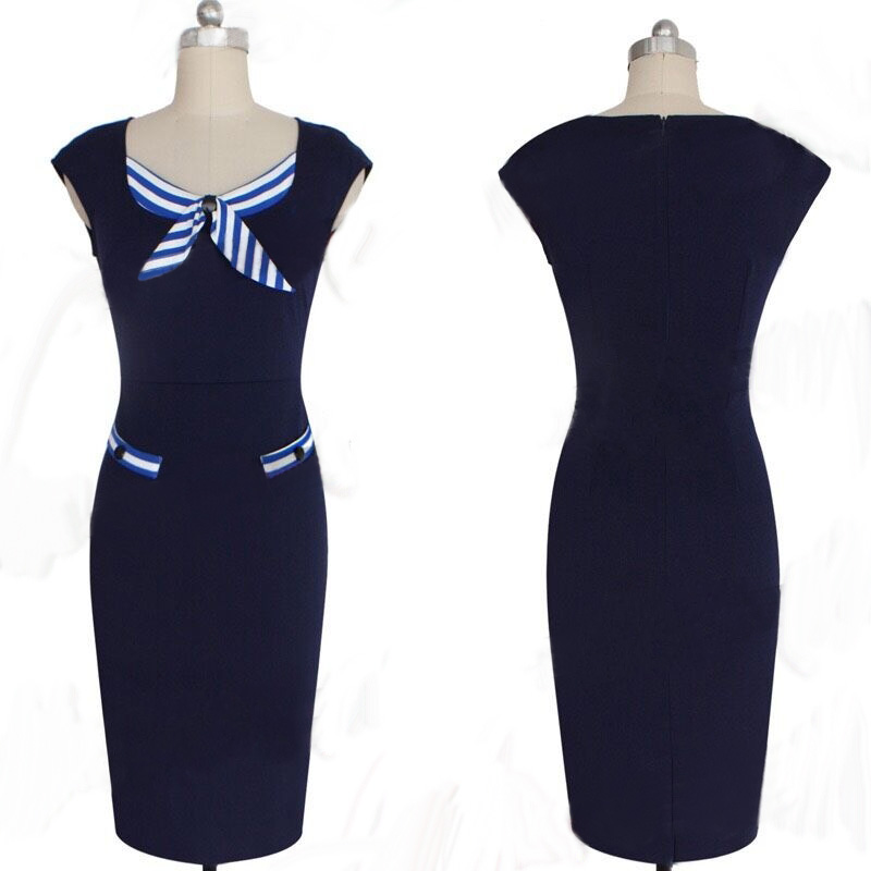 Vintage Rockabilly Sailor Navy Blue Midi Dress L36054 |