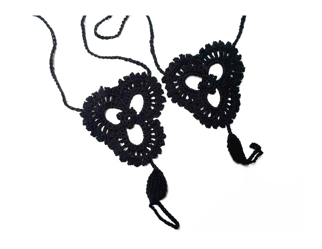 Black Triangle Floral Crochet Barefoot Sandals L98001-1