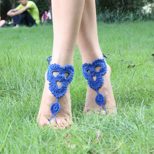 Royal Blue Triangle Floral Crochet Barefoot Sandals L98001-2 Description: This lovely pair of barefoot sandals are carefully handmade to perfection. Made with a pleasing blend of polyester and spandex, feet will be fancied up in a unique and hippie-inspired way. Featuring floral detailing on the front of sandals and easy tie-ups around the ankle, the Triangle Floral Crochet Barefoot Sandals have feet in a carefree and classically beautiful presentation. Note: •They are easy to wash and one size fits all •Popular for beach holidays especially for wedding •Wear them separately or pair with heeled sandals to style •Crochet barefoot sandals are well received by women worldwide