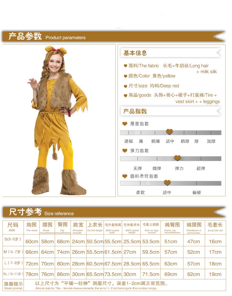 Courage Lion Child Girls Cute Halloween Costume L15285Costume Includes: Dress with Tail, Vest, Belt, Boot Covers, Headband with Ears