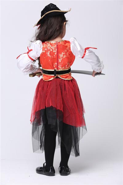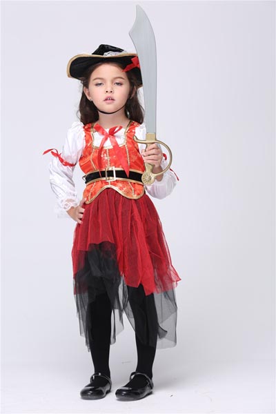 Princess Of The Seas L15286 The Princess of the Seas girls costume Includes a pirate blouse with attached belt, skirt and soft fabric hat. Cutlass, tights and shoes not included. Ideal for any pirate princess, buccaneer themed party or childrens fancy dress.
