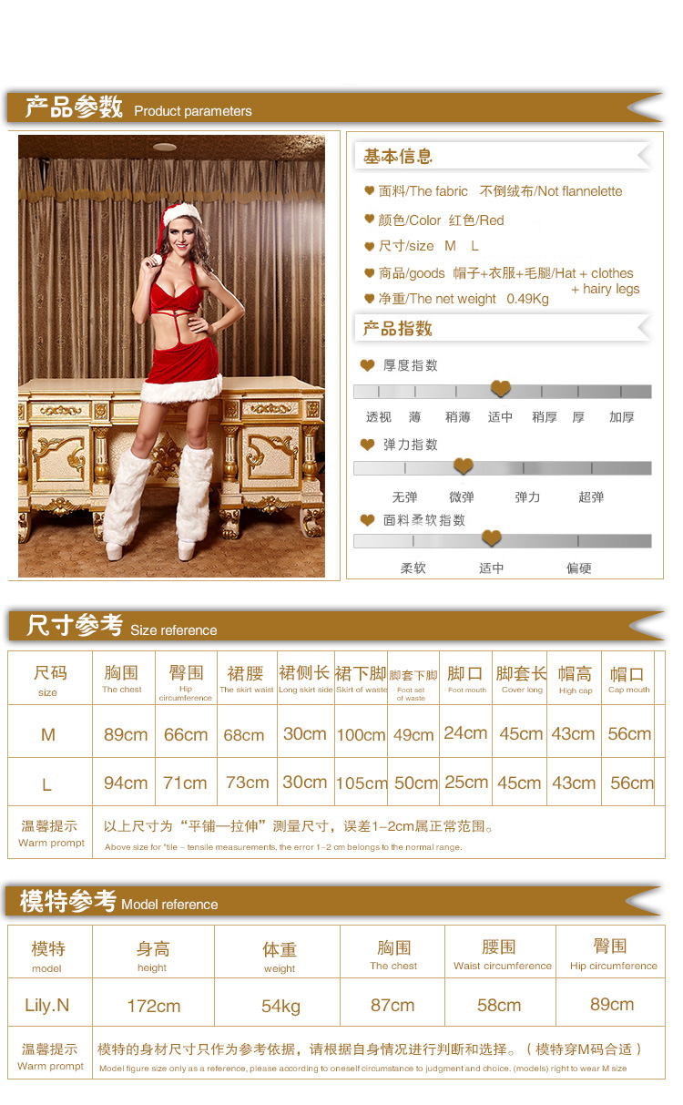Sexy Christmas Mini Dress L70929,comes with hat,dress,leg warmers.