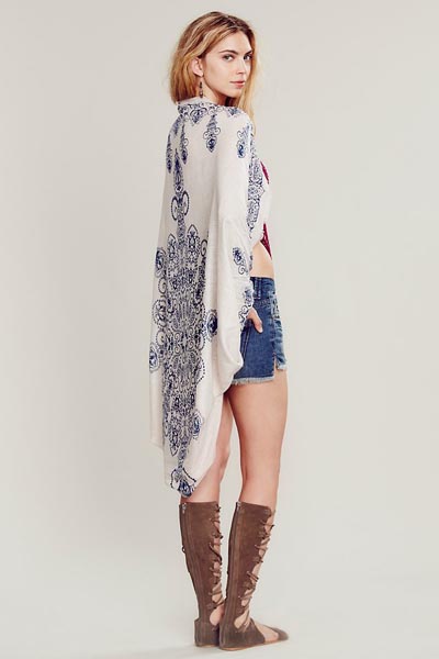 Elegant Porcelain Pattern Raw Edge Kimono L38273