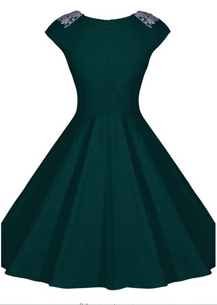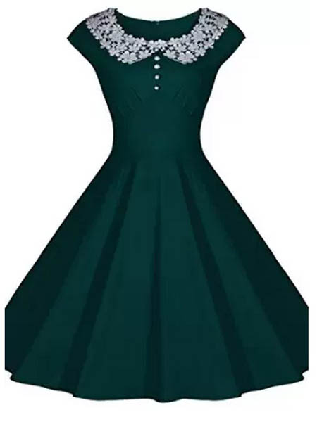 | Vintage Peter Pan Collar Long Sleeve Lace Spliced Dress L36059-1 |