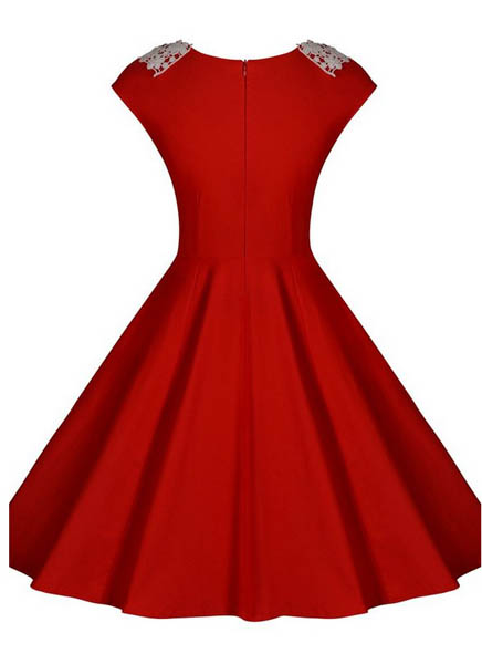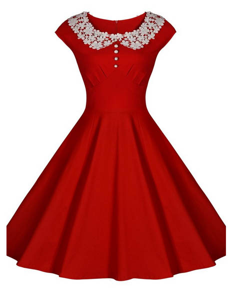 | Vintage Peter Pan Collar Long Sleeve Lace Spliced Dress L36059-2 |