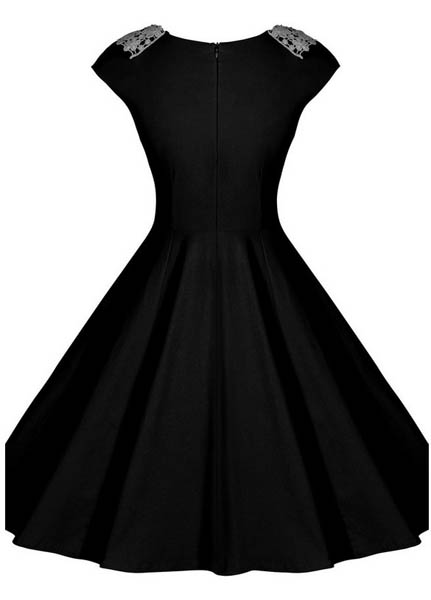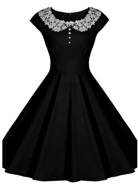| Vintage Peter Pan Collar Long Sleeve Lace Spliced Dress L36059-3 |