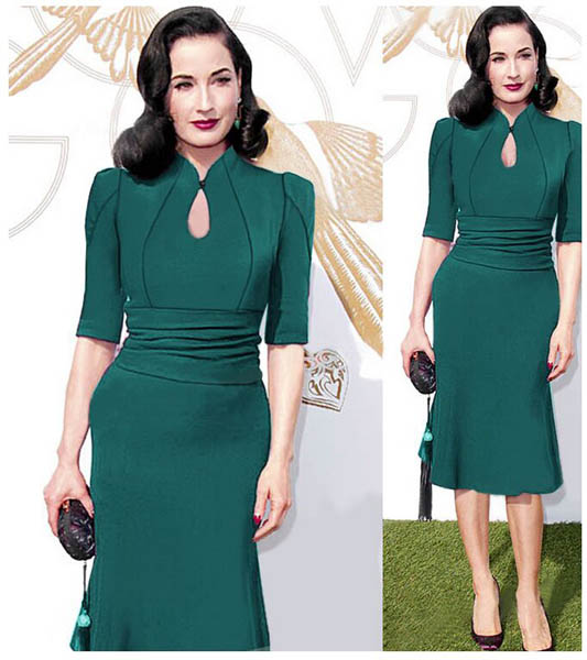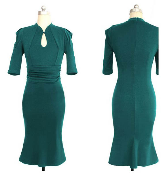 | Elegant Retro Pinup Tunic Ruched Evening Party Mermaid Midi Dress L36060-1 |