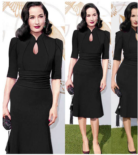 | Elegant Retro Pinup Tunic Ruched Evening Party Mermaid Midi Dress L36060-2 |