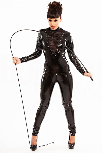 Sexy Shiny Black Stretch PVC Look Catsuit L6069