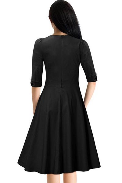 | Womens's Vintage Pure Color Sweetheart Neck 1/2 Sleeve Dress L36068-2 |