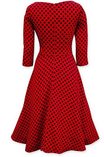 | Vintage Slash Neck Bowknot Polka Dot Skater-dress L36069-1 |