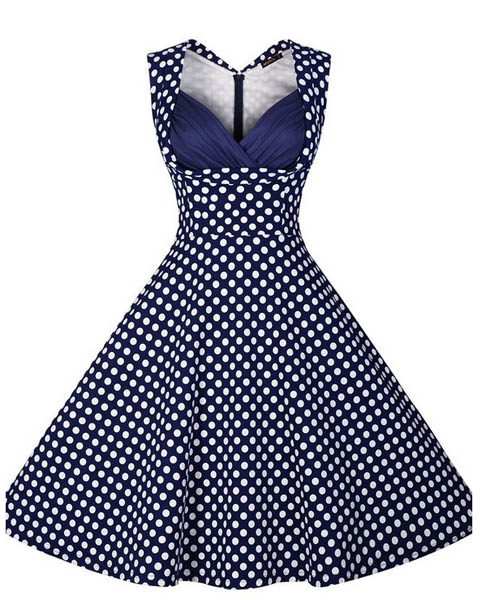 | Retro Style Sweetheart Neck Sleeveless Spliced Polka Dot Dress L36073-2 |