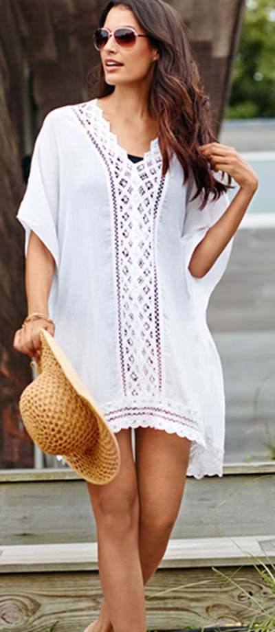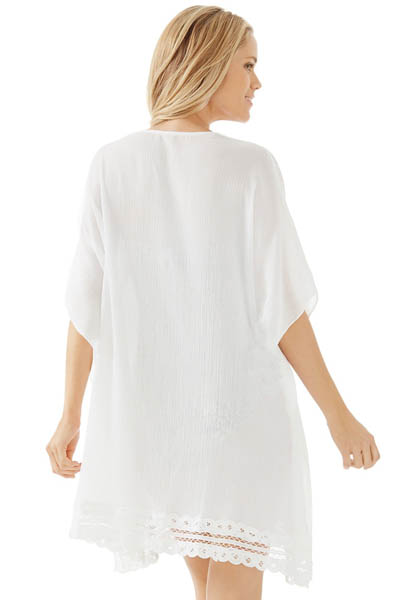 Embroidered V Neck Flowy White Beach Cover Up L38431