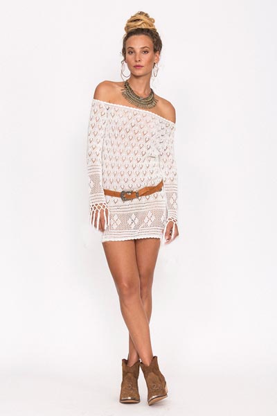 Off the Shoulder Knitted Mini Beach Dress L38289