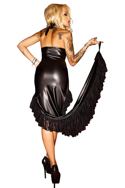 Sexy PVC look Black Faux Leather Gothic Fetish Lingerie Bondage Long Dress L51248