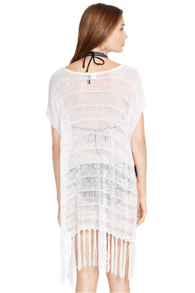 Fringe Swing Fishnet Crochet Hollow-out Pullover Beach Shawl Cover-up L38307