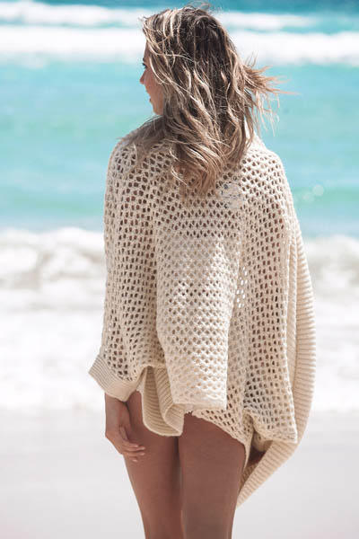 Angel White Crochet Lace Knit Honeycomb Long Beachwear L38300