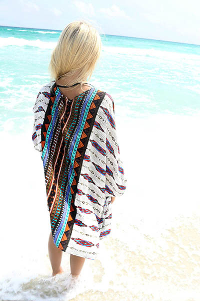 Aztec Print Chiffon Summer Resort Beachwear Kimono L38303