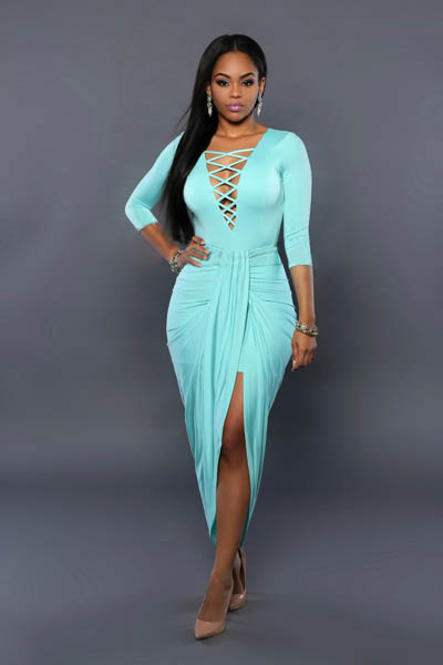 | Kansas Aqua Draped Front Dress L51260-1 |