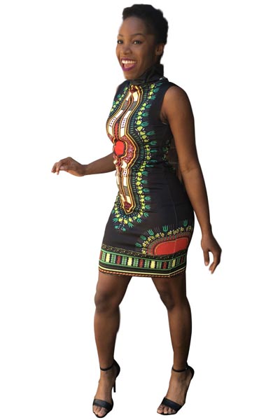 Ethnic Style Round Neck Sleeveless Totem Printed Mini Dress L28072-1