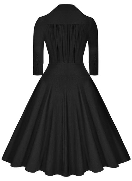 | Deep V Bow Belt Short-sleeve Big Swing Dress L36085-1 |