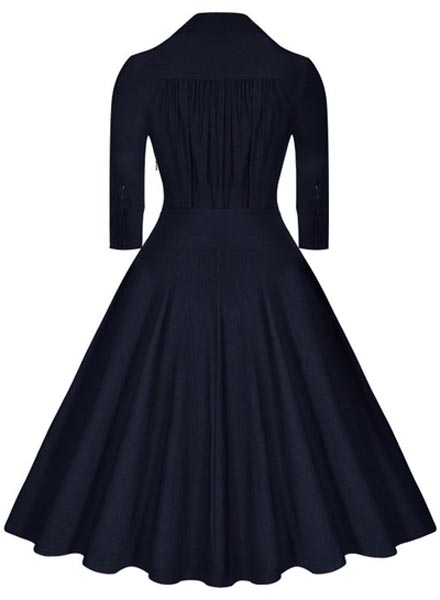 | Deep V Bow Belt Short-sleeve Big Swing Dress L36085-2 |