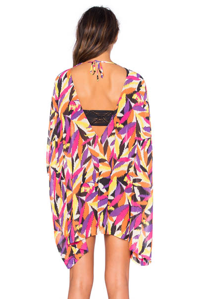 Colorful Leaves Print V Neck Summer Beach Cover-up L38316