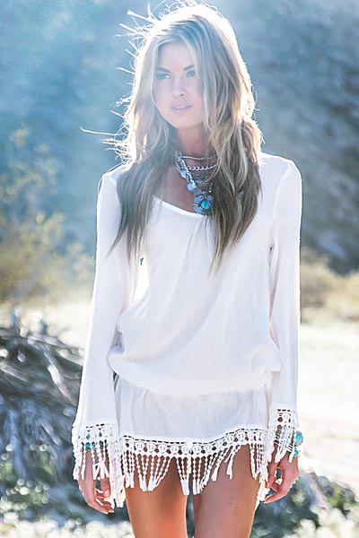Chic Boho Tassel Hem Beach Mini Dress L38263