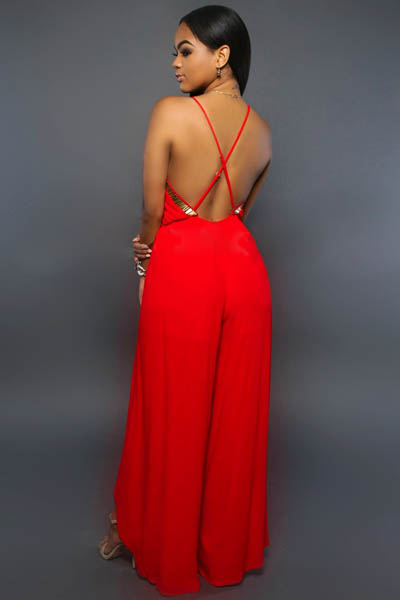 | Brief Sexy & Club V-Neck Sleeveless Spaghetti Strap Loose Floor-Length Jumpsuits L55186-1 |