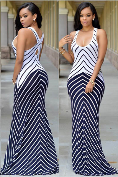 | Acacia White Navy Stripes Maxi Dress L51275 |