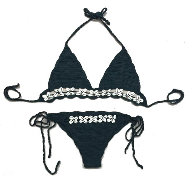 Halter Knit Fringed Black Bikini Sets L32584-1