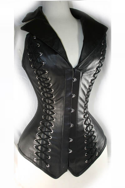 Back Strap and Front Collar Leather Corset L4201-2