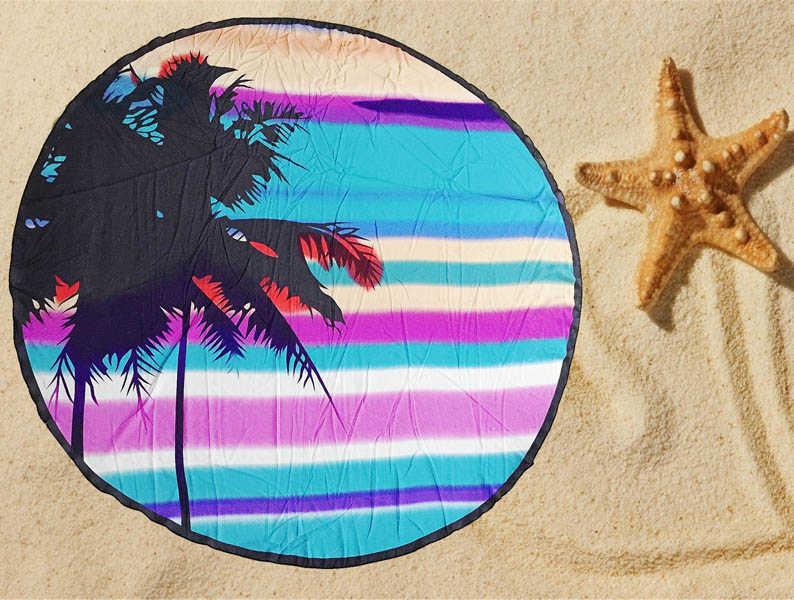 Beach Towel Round Blanket Swim Tropical Beach Sunset/Palm Tree L38351