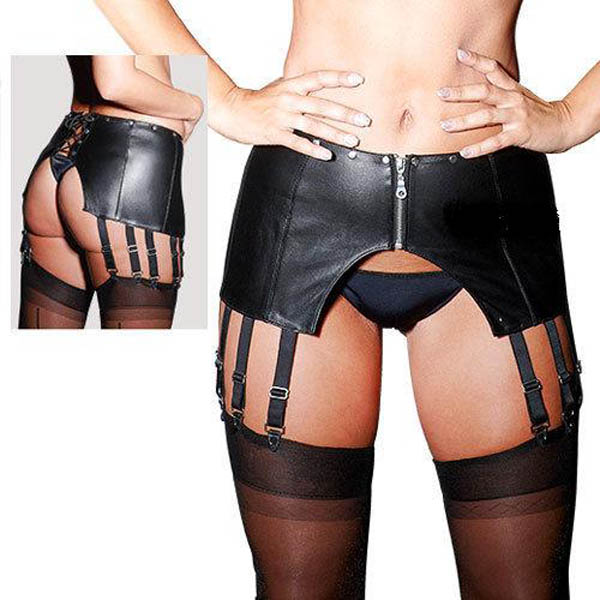 Wide Leather Garter Belt With Front Zip Girdles L466