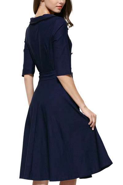 | Women Double Breasted Lapel Collar Belted A Line Dress L36102 |