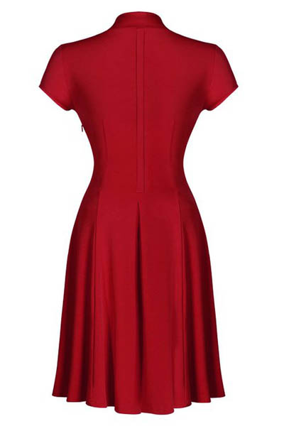 | V Neck Lantern Sleeve Pencil Stretch Dress L36103-3 |
