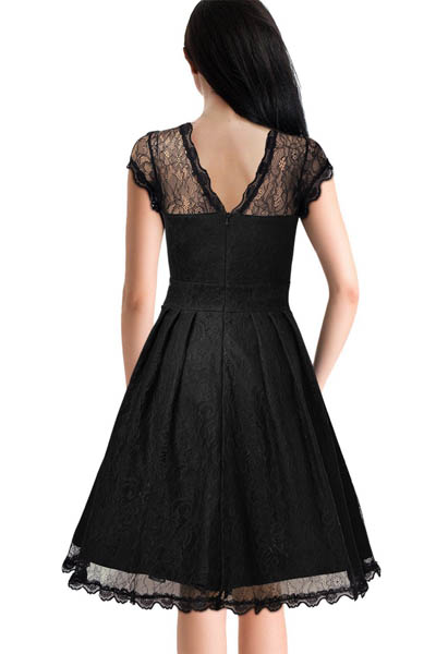 | Scroop Neck Vintage Casual Mesh A-line Dress L36104-2 |